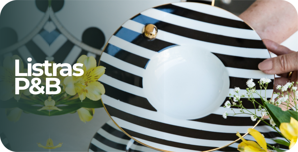 Bowl listrada em P&B com acabamento em ouro 12%, medindo 5 de altura por 9cm de diâmetro – 100m